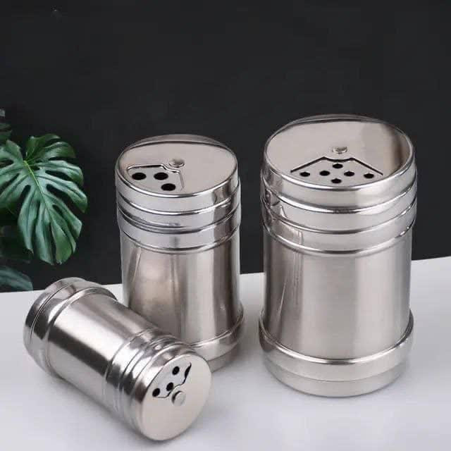 نمکدان بزرگ 3 تایی استیل- ادویه پاش سه تایی استیل